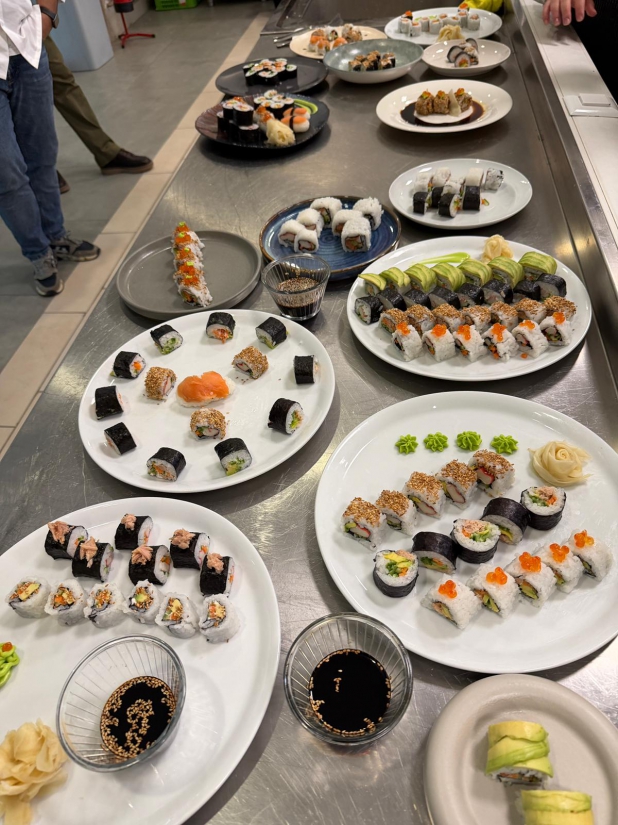 Etkinlikte öncelikle şefler tarafından sushi atölyesi verildi. Bu atölyede sushi yapımının incelikleri, sushi yapımında kullanılan malzemeler ve sarma teknikleri gösterildikten sonra bölümümüz öğrencileri tarafından çeşitli sushi tabakları hazırlandı.